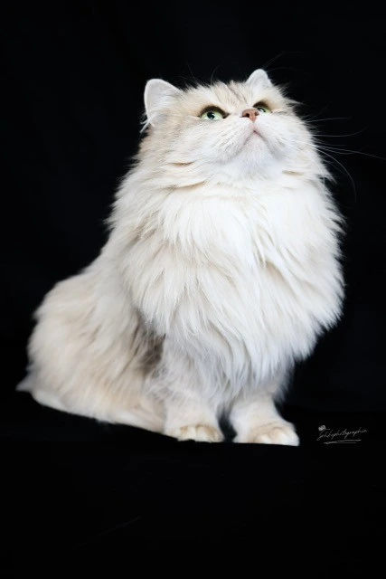 Yeux : Grands, expressifs, en forme d’amande, souvent verts, dorés ou cuivrés ; les yeux bleus sont possibles sur certaines robes.